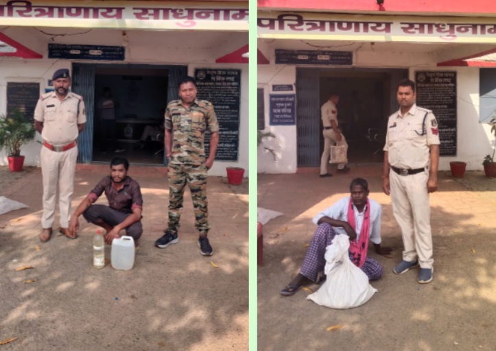 प्रकरण में आज दिनांक 14.04.2025 को मुखबीर की सुचना पर ग्राम साल्कोना बांजीपाली मार्ग पर आरोपी देवानंद बौहान पिता स्व० चंदन चौहान उम्र 50 वर्ष साकिन साल्हेओना थाना सरिया जिला सारंगढ़-बिलाईगढ़ (छ०ग०) के कब्जा से उसके पेश करने पर 15 लीटर हाथ भठ्ठी का बना कच्ची महुआ शराब कीमती करीबन 3000 रू० एवं आरोपी राज तहिस पिता बलराम सहित उम्र 32 वर्ष साकिन सरिया वार्ड क० 09 थाना सरिया जिला सारंगढ़-बिलाईगढ़ (७०ग०) के कब्जा से उसके पेश करने पर 07 लीटर हाथ भठ्ठी का बना कच्ची महुआ शराब कीमती करीबन 1400 रु० को जप्त कर पृथक-पृथक आरोपियों के विरुद्ध थाना सरिया में अप००-55/2025 धारा 34(2), 59 (क) आबकारी एक्ट एवं अप०७०-56/2025 धारा 34(2), 59 (क) आबकारी एक्ट कायम कर मामला विवेचना में लिया गया। आरोपियों को आज दिनांक 14.04.2024 को विधिवत् गिरफ्तार कर उन्हें न्यायिक रिमाण्ड पर भेजा जा रहा है। इस प्रकार थाना क्षेत्र में अवैध शराब बिकी करने वालों के विरुद्ध सरिया पुलिस द्वारा लगातार कार्यवाही जारी रहेगी।