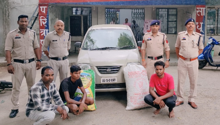 रायगढ़— एसपी श्री दिव्यांग पटेल के दिशा निर्देशन पर सीमावर्ती प्रांत ओड़िसा से गांजा की अवैध तस्करी पर पुलिस निगाह रखे हुए है । इसी क्रम में तमनार पुलिस ने मादक पदार्थों की तस्करी के विरुद्ध बड़ी कार्रवाई करते हुए ओड़िसा से गांजा ला रहे तीन तस्करों को सलिहाभांठा चौक पर घेराबंदी कर पकड़ा है। कार्रवाई में 37 किलो गांजा, एक सेंट्रो कार, तीन मोबाइल फोन और कुल मिलाकर 6.45 लाख रुपये की संपत्ति जब्त की गई है। गांजा तस्करों और सप्लायर के खिलाफ एनडीपीएस एक्ट के तहत मामला दर्ज कर गिरफ्तार 3 आरोपियों को रिमांड पर भेजा गया है। घटना 23 मई की दोपहर की है जब तमनार थाना प्रभारी निरीक्षक आर्शीवाद राहटगांकर को मुखबिर से सूचना मिली कि ग्राम धौराभांठा की ओर से सेंट्रो कार में कुछ लोग गांजा भरकर ला रहे हैं। सूचना मिलते ही डीएसपी साइबर सेल अनिल विश्वकर्मा के मार्गदर्शन में पुलिस टीम ने सलिहाभांठा चौक पर घेराबंदी की और मुखबिर द्वारा बताई गई कार को रोकने का प्रयास किया। कार सवार तीनों व्यक्ति भागने की कोशिश करने लगे लेकिन पुलिस ने उन्हें मौके पर ही पकड़ लिया। पकड़े गए आरोपियों में श्रीपति चौहान (35), रोहित किसान (28) और विमल यादव (19) शामिल हैं, जो सभी टांगरघाट, थाना तमनार, जिला रायगढ़ के निवासी हैं। कार श्रीपति चौहान के नाम पर पंजीकृत है। पुलिस ने कार और डिक्की की तलाशी लेने पर उसमें रखी दो बोरियों से कुल 37 किलो गांजा बरामद किया, जिसे आरोपी ओड़िसा से लाने की बात कबूल कर चुके हैं। पुलिस ने आरोपियों के मेमोरेंडम पर कार्यवाही करते हुए घटना में प्रयुक्त पुरानी सेंट्रो कार (सीजी 13 सी 5581) जिसकी अनुमानित कीमत 2.50 लाख रुपये है, 37 किलो गांजा जिसकी कीमत करीब 3.70 लाख रुपये तथा तीन मोबाइल फोन जिसकी कीमत करीब 25 हजार रुपये है, जब्त किए हैं। कुल मिलाकर पुलिस ने 6.45 लाख रुपये की संपत्ति जप्त की है। पुलिस पूछताछ में आरोपियों ने ओड़िसा के दो गांजा सप्लायर्स के नाम भी उजागर किए हैं, जिन्हें भी इस मामले में आरोपी बनाया गया है। पांचों आरोपियों के विरुद्ध थाना तमनार में अपराध क्रमांक 105/25, धारा 20 (बी)(ii)(सी) एनडीपीएस एक्ट के तहत अपराध दर्ज कर गिरफ्तार 3 आरोपी को न्यायालय में पेश किया गया, जहां से उन्हें रिमांड पर भेज दिया गया। इस सफल कार्रवाई में निरीक्षक आर्शीवाद राहटगांवकर, सहायक उप निरीक्षक सुरुतिलाल सिदार, प्रधान आरक्षक हेम प्रकाश सोन, हेमंत पात्रे, आरक्षक पुरूषोत्तम सिदार और अमरदीप एक्का की महत्वपूर्ण भूमिका रही। पुलिस अधीक्षक श्री दिव्यांग पटेल ने सीमावर्ती क्षेत्रों में मादक पदार्थों की तस्करी रोकने को लेकर चल रही मुहिम में यह कार्रवाई एक बड़ी उपलब्धि है।