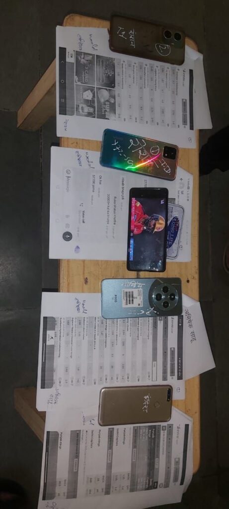 आरोपी 01 रोशन साहू पिता जगदीश साहू उम्र 27 वर्ष 02 अभिषेक साहू पिता ओंकार साहू उम्र 19 वर्ष 03 इंद्र साहू पिता लखन लाल साहू उम्र 27 वर्ष 04 गोविंद साहू पिता रामेश्वर साहू उम्र 22 वर्ष सभी सकिनान पवनी थाना बिलाईगढ़ जिला सारंगढ़ बिलाईगढ़ के कब्जे से 05 नग एंड्राइड मोबाइल, विवो पोको हानर कंपनी का मोटरसाइकिल एचएफ डीलक्स आइडी मे सुरक्षित रकम 10000 ₹ जुमला कीमती 60000 रुपए एवं लाखो रूपये के लगे दांव हिस्टरी स्क्रिन शाट को मुताबिक जब्ती पत्रक समक्ष गवाहो के समक्ष जप्त कर आरोपी के विरुद्ध छत्तीसगढ़ जुआ प्रतिषेध अधिनियम 2022 कि धारा 7 जुआ ऐक्ट तहत विधिवत कार्यवाही किया गया है। आरोपियो को न्यायिक रिमांड हेतु माननीय न्यायालय रवाना किया गया है।