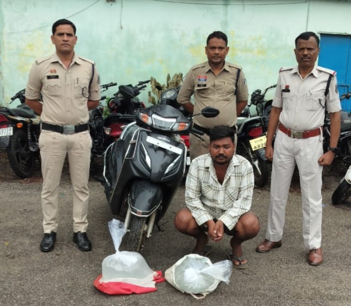 रायगढ़:बिना नंबर स्कूटी से शराब की तस्करी:पुलिस ने नाकेबंदी में आरोपी को दबोचा, 20 लीटर महुआ शराब, स्कुटी जब्त…
