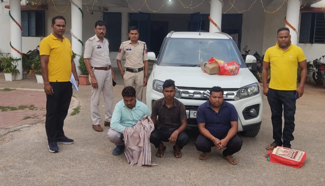 ओडिशा से ब्रेजा कार में गांजा ला रहे तीन तस्कर गिरफ्तार, 5 किलो गांजा समेत 11 लाख की संपत्ति जब्त