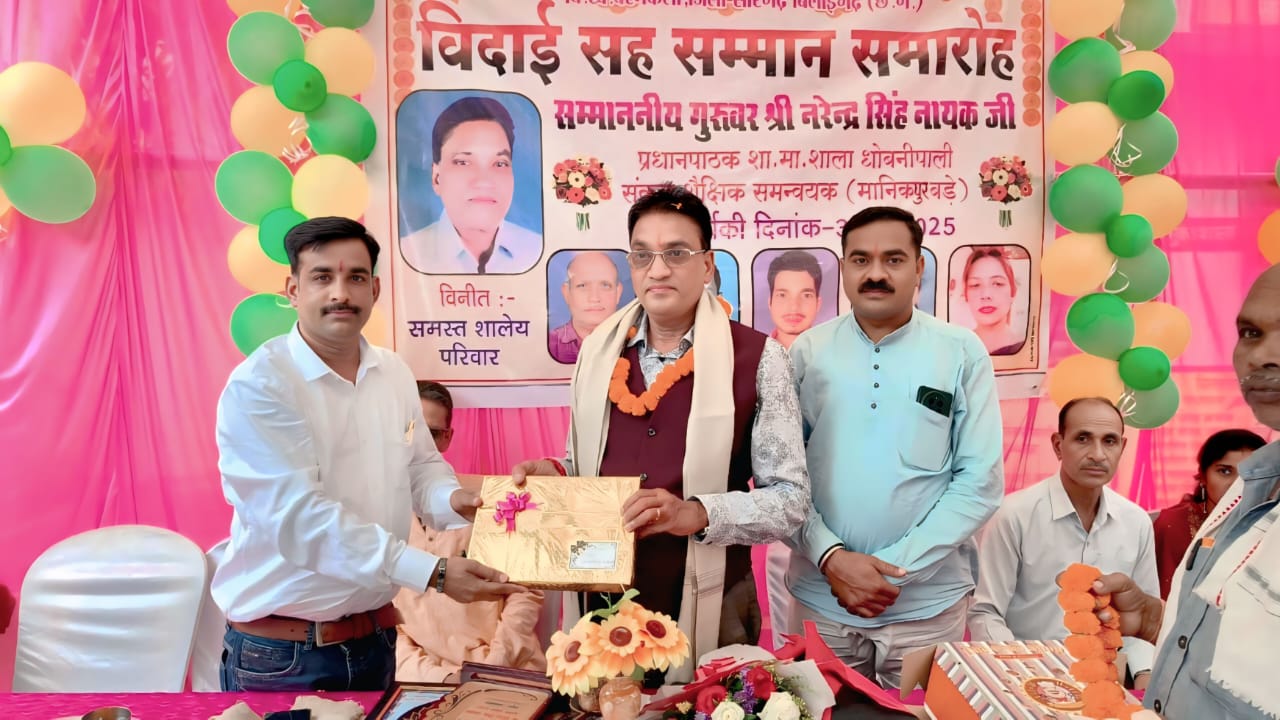 शासकीय माध्यमिक विद्यालय धोबनीपाली में पदस्थापित प्रधान पाठक एवं शैक्षिक समन्वयक मानिकपुर (बड़े) श्री नरेन्द्र सिंह नायक के सेवानिवृत्त होने पर साल्हेओना एवं मानिकपुर संकुल स्तरीय शालेय परिवार के द्वारा धोबनीपाली के विद्यालय प्रांगण में विदाई सह सम्मान समारोह का आयोजन किया गया।