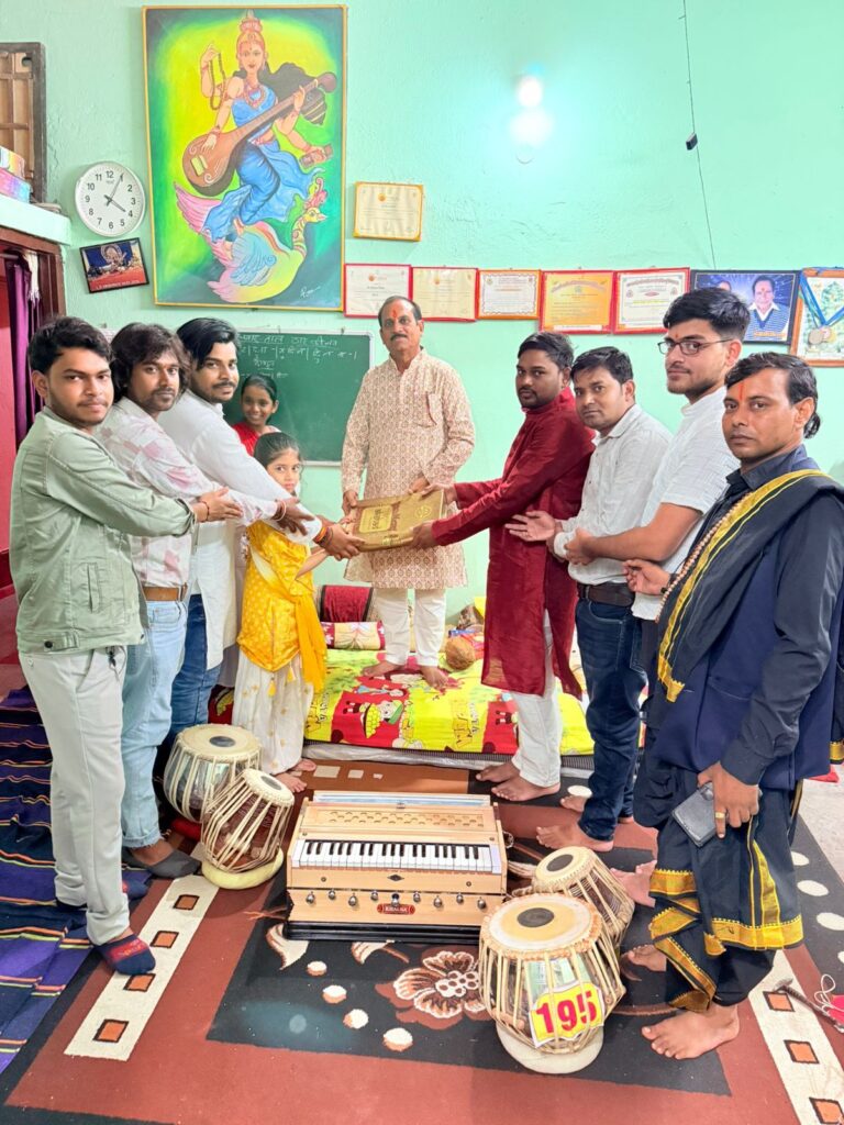 सारंगढ़| दिनांक 10.07.25 दिन गुरुवार को गुरु पूर्णिमा का पवन अवसर पर मां वैष्णवी संगीत महाविद्यालय रानी सागर सारंगढ़ के समस्त छात्र-छात्राओं ने माता सरस्वती एवं अपने गुरु के पूजन कर अपने गुरु से आशीर्वाद प्राप्त किए। कथक की छात्राएं गणेश वंदना एवं गुरु वंदना , आमद, तोडा एवं थाठ कवित्त में जमुना के तट आदि की सुंदर प्रस्तुति की ,जिसमें छात्राओं में अदिती सुलतानिया,अलिशु सिदार,पूर्वी भगत,पविनी तिवारी, ऐलेन कुजूर,एम्मा कुजूर,चेष्टा मैत्री,अपेक्षा केशरवानी, आरना केशरवानी,अनुषा केशरवानी , गौरांगी पटवा, कीर्ति केशरवानी,युक्ता गोपाल, लावन्या खूंटे,इन सभी छात्राओं द्वारा सुंदर प्रतुति हुई।