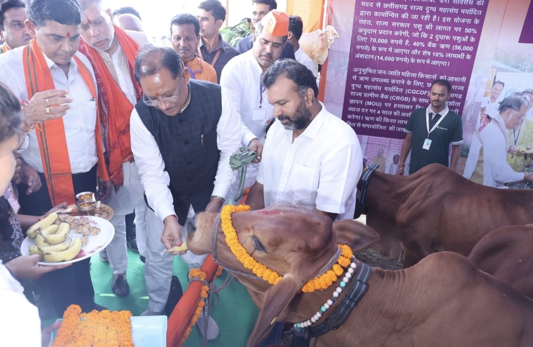 मुख्यमंत्री विष्णु देव साय ने सारंगढ़ में स्टालों का निरीक्षण किया…बच्चों को अन्न प्रासन्न, आदिवासी महिलाओं को दुधारू गाय वितरण किए…