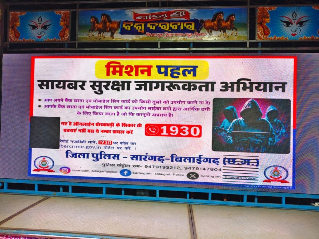 सारंगढ़ बिलाईगढ जिला के पुलिस अधीक्षक आंजनेय वार्ष्णेय के आदेशानुसार अतिरिक्त पुलिस अधीक्षक श्रीमति निमिषा पांडे एवं डीएसपी श्री अविनाश मिश्रा के मार्गदर्शन में साइबर सेल सारंगढ़ और थाना सरिया के टीम द्वारा आज ” मिशन पहल अभियान “के तहत ग्राम पंचधार में साइबर जागरूकता अभियान चलाया गया।