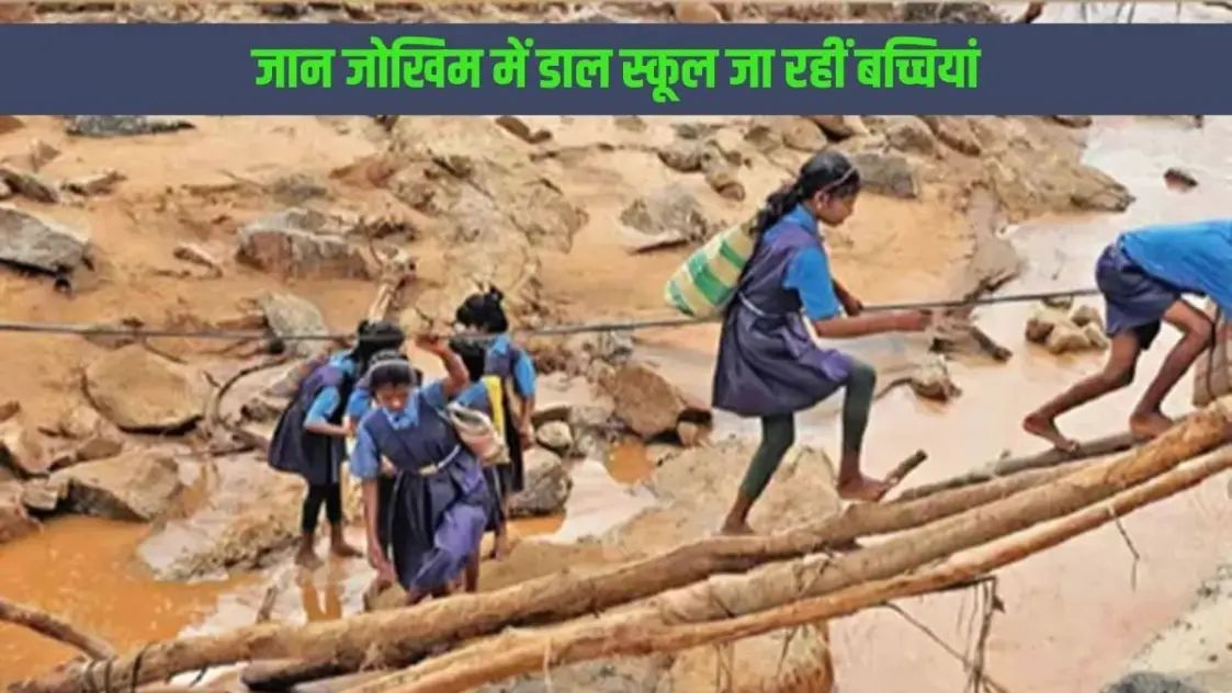 बाढ़ में बह गया पुल, जान जोखिम में डालकर स्कूल जा रहीं बच्चियां; हैरान कर देगा…