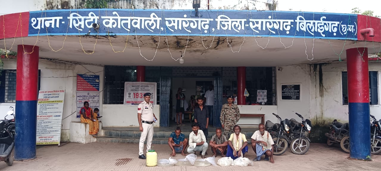 पुलिस अधीक्षक आंजनेय वार्ष्णेये,अति0 पुलिस अधीक्षक निमीषा पाण्डेय एवं एसडीओपी अविनाश मिश्रा के द्वारा अवैध शराब बिक्री पर रोकथाम हेतु लगातार निर्देशित किये जाने पर थाना प्रभारी कोतवाली निरीक्षक कामिल हक के कुशल मार्ग दर्शन में थाना सिटी कोतवाली सारंगढ़ के पुलिस स्टाफ के द्वारा अवैध शराब बनाने व बिक्री करने वाले व्यक्ति को गिरफ्तार करने में सफलता प्राप्त की है।