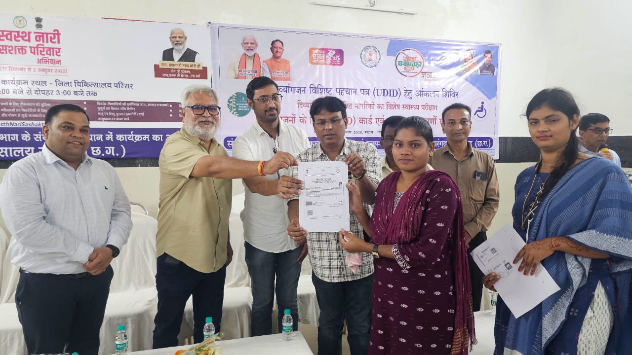 सारंगढ़ बिलाईगढ़/सेवा पखवाड़ा के अवसर पर समाज कल्याण विभाग एवं स्वास्थ्य विभाग द्वारा संयुक्त रूप से स्वास्थ्य परीक्षण, दिव्यांगजनों के लिए विशिष्ट पहचान पत्र बनाने के साथ यूडीआईडी कार्ड एवं वितरण आयोजन जिला चिकित्सालय सारंगढ़ में किया गया। शिविर में नगरपालिका परिषद सारंगढ़ के पार्षद मयूरेश केशरवानी, गणमान्य नागरिक अरविंद हरिप्रिया, उप संचालक समाज कल्याण विनय तिवारी, सिविल सर्जन डॉ दीपक जायसवाल, डॉ आर एल सिदार, डीपीएम नंदलाल इजारदार, मेडिकल बोर्ड की टीम, स्पेशल एजुकेटर खीरमती पटेल, नीलम लकड़ा सहित अधिकारी कर्मचारी मौजूद रहे। कार्यक्रम का संचालन आर बी तिवारी ने किया। इस अवसर पर 5 दिव्यांगजनों को विशिष्ट पहचान पत्र प्रदाय किया गया।