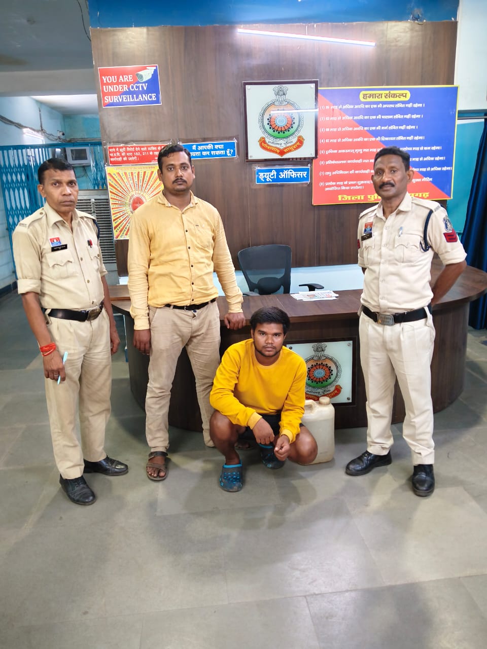 रायगढ़। कोतरारोड़ पुलिस ने अवैध शराब के खिलाफ कार्रवाई करते हुएआज ग्राम धनागर में भोजराम उरांव नामक युवक को 10 लीटर महुआ शराब के साथ गिरफ्तार किया है। थाना प्रभारी को मुखबिर से सूचना मिली थी कि आरोपित अपने घर के आंगन में अवैध शराब बनाकर बिक्री के लिए रखा है। इस पर थाना प्रभारी निरीक्षक मोहन भारद्वाज के नेतृत्व में पुलिस टीम ने गवाहों की मौजूदगी में छापेमारी की, जहां से आरोपित भोजराम उरांव पिता उदयराम उरांव उम्र 25 वर्ष निवासी मदनपुर धनागर के कब्जे से सफेद रंग की 10 लीटर क्षमता वाली प्लास्टिक जेरिकेन में महुआ शराब बरामद किया गया।