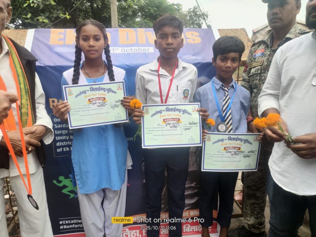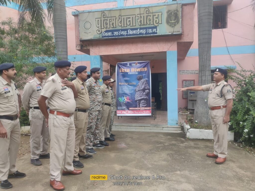 बिलाईगढ़: राष्ट्रीय एकता दिवस के अवसर पर शुक्रवार को थाना सलिहा परिसर में सरदार वल्लभभाई पटेल जी की 150वीं जयंती धूमधाम से मनाई गई। इस अवसर पर थाना प्रभारी अमित भार्गव के नेतृत्व में “एकता दौड़ का आयोजन किया गया।