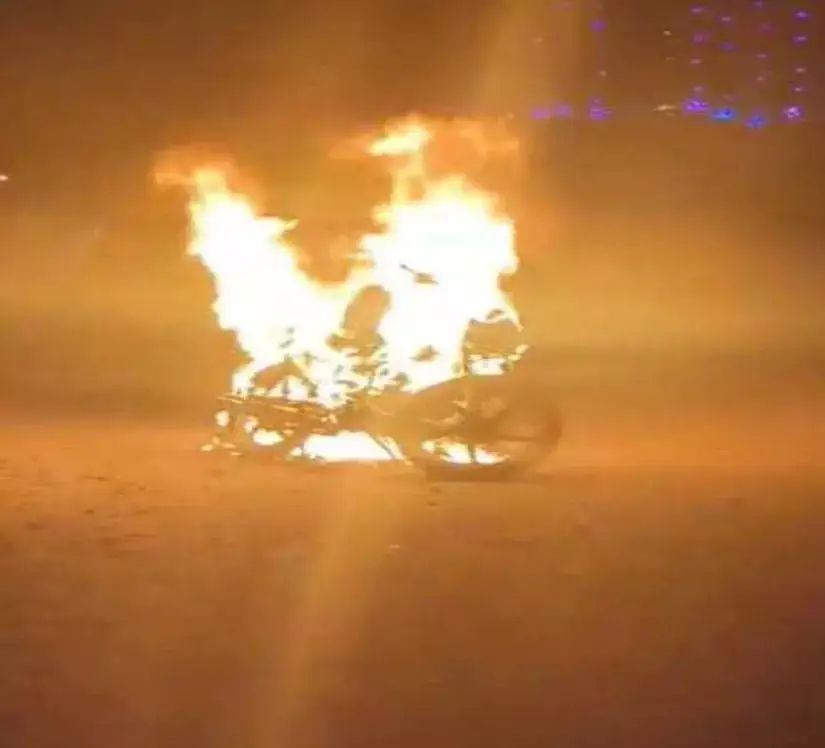बाइक देखते ही देखते धूं-धूं कर जलकर राख हो गई। घटना के समय वहां मौजूद लोग मदद करने की बजाय वीडियो बनाने में मशगूल रहे।