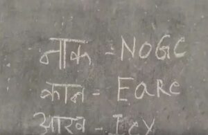 इतना ही नहीं, टीचर जी जब बच्चों को पार्ट ऑफ बॉडी नेम सिखा रहे हैं वहां भी टीचर ने गलतियों का अंबार लगा दिया। टीचर ने ‘Ear’ को ‘Eare’ Nose को noge और ‘Eye’ की जगह ‘Iey’ लिखा गया। हद तो तब हो गई जब टीचर जी ने बच्चों को मदर फादर की स्पेलिंग लिखवाई।