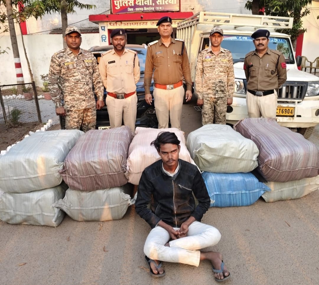 विवरण इस प्रकार है कि दिनांक 26/12/2025 को दौरान पेट्रोलिंग सूचना मिला कि उड़ीसा तरफ से पिकअप क्र UP 64 CT 6904 में भारी मात्रा में गांजा आ रहा है और सामने कार से पायलेटिंग किया जा रहा है कि सूचना पर खजूरिया तालाब सरिया पास सफेद रंग के पिकअप क्र सीजी UP 64 CT 6904 को घेराबंदी कर पकड़ा गया जिसमें से सब्जी कैरेट को हटाने पर अंदर दस बोरी में भरा कुल 300 किलो200ग्राम अवैध मादक पदार्थ गांजा मिला । पिकअप में सवार आरोपी राहुल कुमार से पूछताछ करने पर अपने अन्य 04 साथियों के साथ बलांगीर उड़ीसा से गांजा लेकर फतेहपुर उत्तरप्रदेश ले जाना बताया। पिक अप में मिले गांजा को गवाहों के समक्ष जप्त कर आरोपी राहुल कुमार राजपूत पिता रामविलास उम्र 22 वर्ष ग्राम बमरौली थाना हुसैनगंज जिला फतेहपुर ( उत्तरप्रदेश)के खिलाफ विधिवत् कार्यवाही करते हुए थाना सरिया में अप क्र 278/25 धारा 20 बी ndps एक्ट का अपराध दर्ज किया गया है । पिकअप गाड़ी के सामने पायलेटिंग कर रहे रेनॉल्ट कार क्र UP 71 BJ 9550 को भी जप्त किया गया है ।पायलेटिंग गाड़ी सवार में अन्य 04 आरोपियों की पतासाजी की जा रही है।