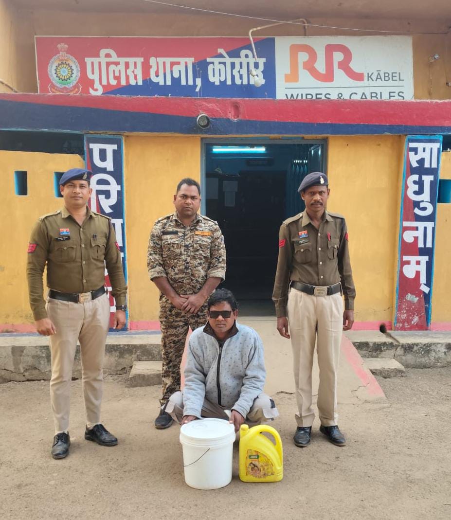 सारंगढ़ । जिला के वरिष्ठ अधिकारियों द्वारा समस्त थाना /चौकी प्रभारियों को अवैध शराब, जुआ, सट्टा जैसे अवैधानिक कार्यों में संलिप्त व्यक्तियों के विरुद्ध सख्त कानूनी कार्यवाही करने हेतु कड़े निर्देश दिए गए है जिस पर अमल करते हुए पुलिस अधीक्षक आँजनेय वार्ष्णेय, अतिरिक्त पुलिस अधीक्षक निमिषा पाण्डेय, अनुविभागीय अधिकारी पुलिस सारंगढ श्रीमती स्नेहिल साहू, अविनाश मिश्रा उप पुलिस अधीक्षक मुख्यालय सारंगढ के कुशल मार्गदर्शन पर थाना कोसीर पुलिस को दिनांक 29.12.2025 को मुखबीर से सूचना मिला कि ग्राम कोसीर का सुनील सारथी पिता पंचराम सारथी अपने घर पर भारी मात्रा में कच्ची शराब बिक्री करने हेतु रखा है एवं बना रहा है कि सूचना पर मौका स्थल पहुंचकर घेराबंदी कर रेड कार्यवाही किया आरोपी सुनील सारथी पिता पंचराम सारथी के कब्जे से कुल 12लीटर कच्ची शराब जप्त कर कब्जा पुलिस में लिया गया ।मामला अजमानतीय प्रकृति का होने से आरोपी को गिरप्तार कर न्यायिक अभिरक्षा मे भेजा गया है।