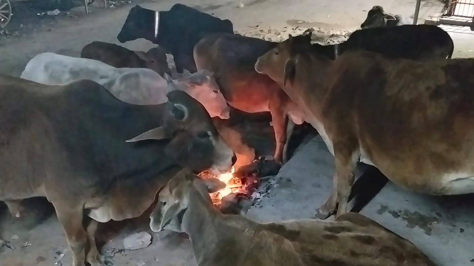 गौमाता भी लें रही आग का सहारा ठंड से बचने