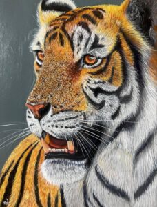 हिरण की सौम्यता हो या बाघ की तीव्र दृष्टि हर चित्र में प्रकृति संवेदना और जीवंतता साफ झलकती है। रंगों के माध्यम से भावनाओं को उकेरने की उनकी अद्भुत कला कला प्रेमियों को मंत्रमुग्ध कर रही है।