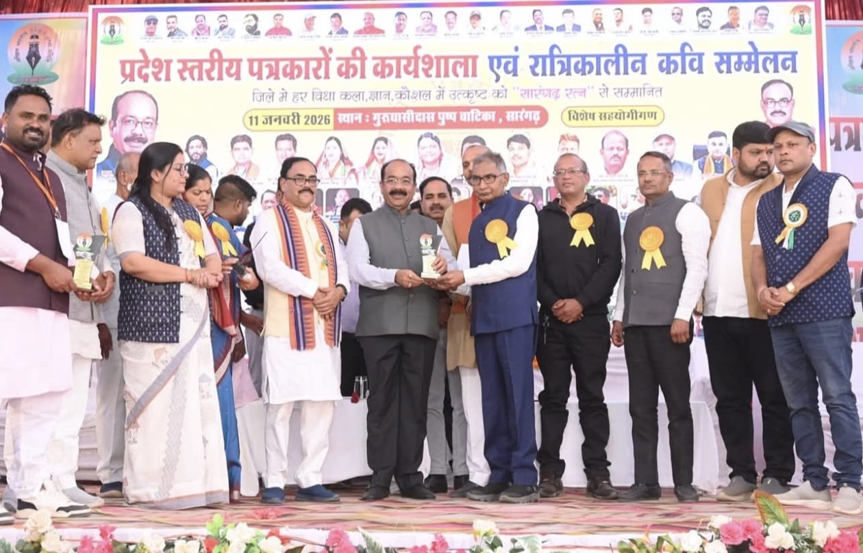 बरमकेला । उप मुख्यमंत्री अरुण साव ने रतन शर्मा को स्मृति चिन्ह भेंट कर सम्मानित करते हुए उनके कार्यों की सराहना की और कहा कि ऐसे समाज सेवी व्यक्ति समाज के लिए प्रेरणास्रोत होते हैं। उन्होंने आशा व्यक्त की कि रतन शर्मा भविष्य में भी इसी तरह समाज और व्यापारिक जगत के हित में कार्य करते रहेंगे। सम्मान प्राप्त करने पर रतन शर्मा ने उप मुख्यमंत्री सहित आयोजकों के प्रति आभार व्यक्त करते हुए कहा कि यह सम्मान उन्हें आगे और बेहतर कार्य करने की प्रेरणा देगा। कार्यक्रम में बड़ी संख्या में प्रदेश भर से आए पत्रकार, सामाजिक कार्यकर्ता, जनप्रतिनिधि एवं गणमान्य नागरिक उपस्थित रहे। कार्यशाला का उद्देश्य पत्रकारों को नवीन चुनौतियों, मीडिया की बदलती भूमिका और सामाजिक दायित्वों से अवगत कराना रहा।