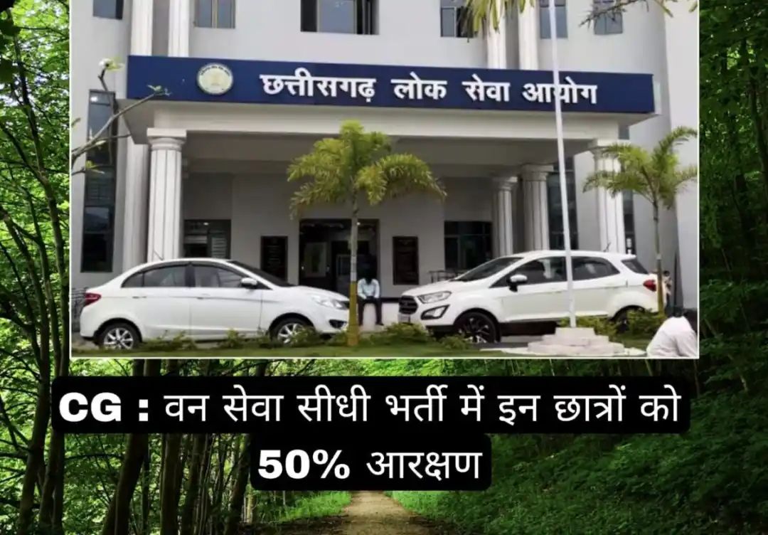 सहायक वन संरक्षक एवं वनक्षेत्रपाल की सीधी भर्ती के लिए रिक्त पदों के 50% पद वानिकी विषय के साथ मान्यता प्राप्त विश्वविद्यालय से स्नातक डिग्री प्राप्त अभ्यर्थियों के लिए आरक्षित रहेंगे। परंतु, यदि उक्त विषय के पात्र अभ्यर्थी उपलब्ध न हो तो उनके लिए आरक्षित पद अग्रनीत नहीं किए जायेंगे और विज्ञापित पदों की पूर्ति छत्तीसगढ़ वन (राजपत्रित) सेवा भर्ती नियम, 2015 में विहित शैक्षणिक अर्हता रखने वाले अन्य पात्र अभ्यर्थियों के द्वारा की जा सकेगी।”