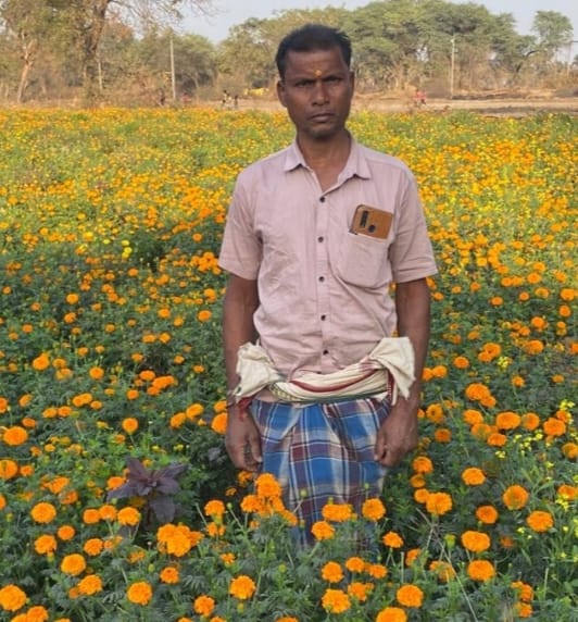 गेंदा की खेती से देवानंद निषाद कर रहा एक एकड़ में 2.5 लाख की कमाई…अन्य किसान रबी फ़सल में धान के स्थान पर गेंदा की खेती की ओर हो रहे हैं अग्रसर…