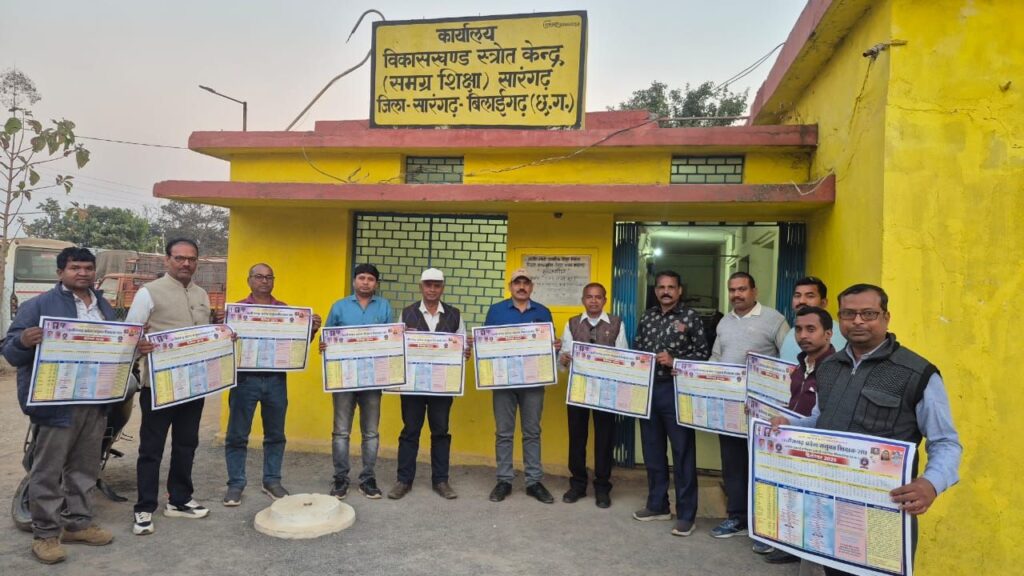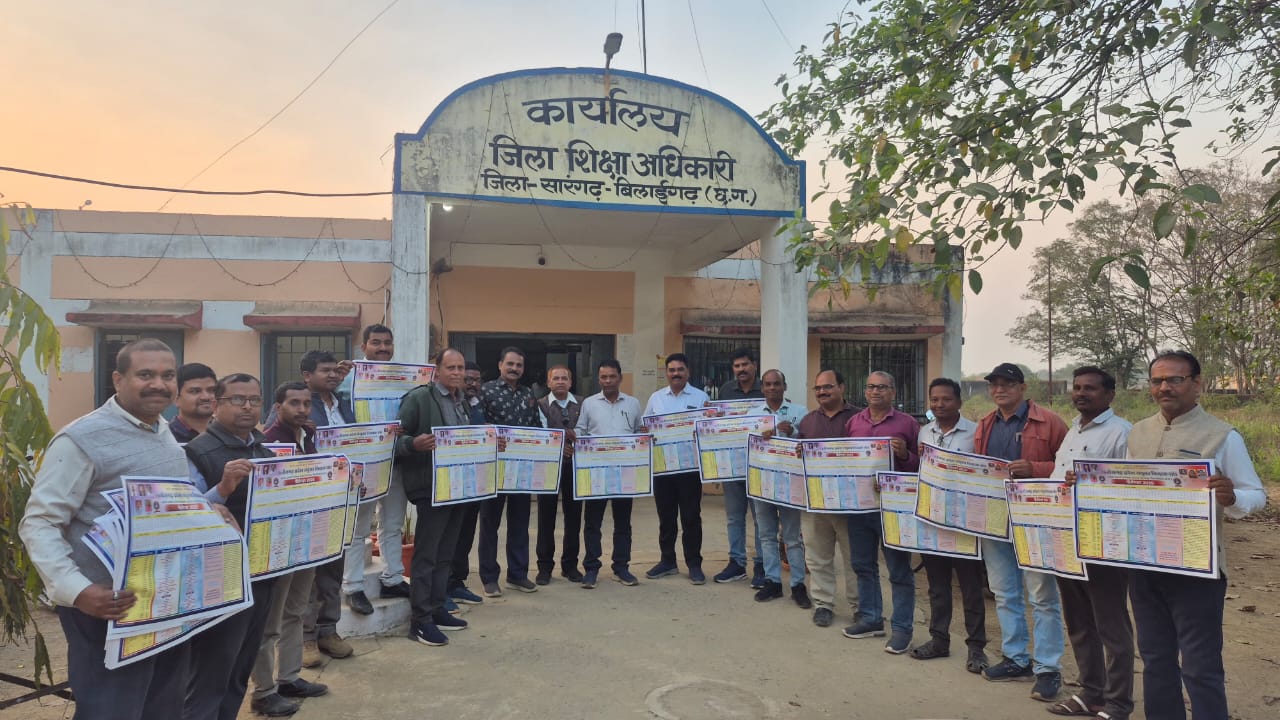 छत्तीसगढ़ प्रदेश संयुक्त शिक्षक संघ जिला सारंगढ़ बिलाईगढ़ के वर्ष 2026 के वार्षिक कैलेंडर का विमोचन जिला शिक्षा अधिकारी जे आर डहरिया, जिला समन्वयक समग्र शिक्षा नरेश चौहान, विकासखंड शिक्षा अधिकारी रेशम लाल कोसले, सहायक विकासखंड शिक्षा अधिकारी मुकेश कुर्रे,भूतपूर्व बी आर सी शोभाराम पटेल के करकमलों से संयुक्त रूप से किया गया!