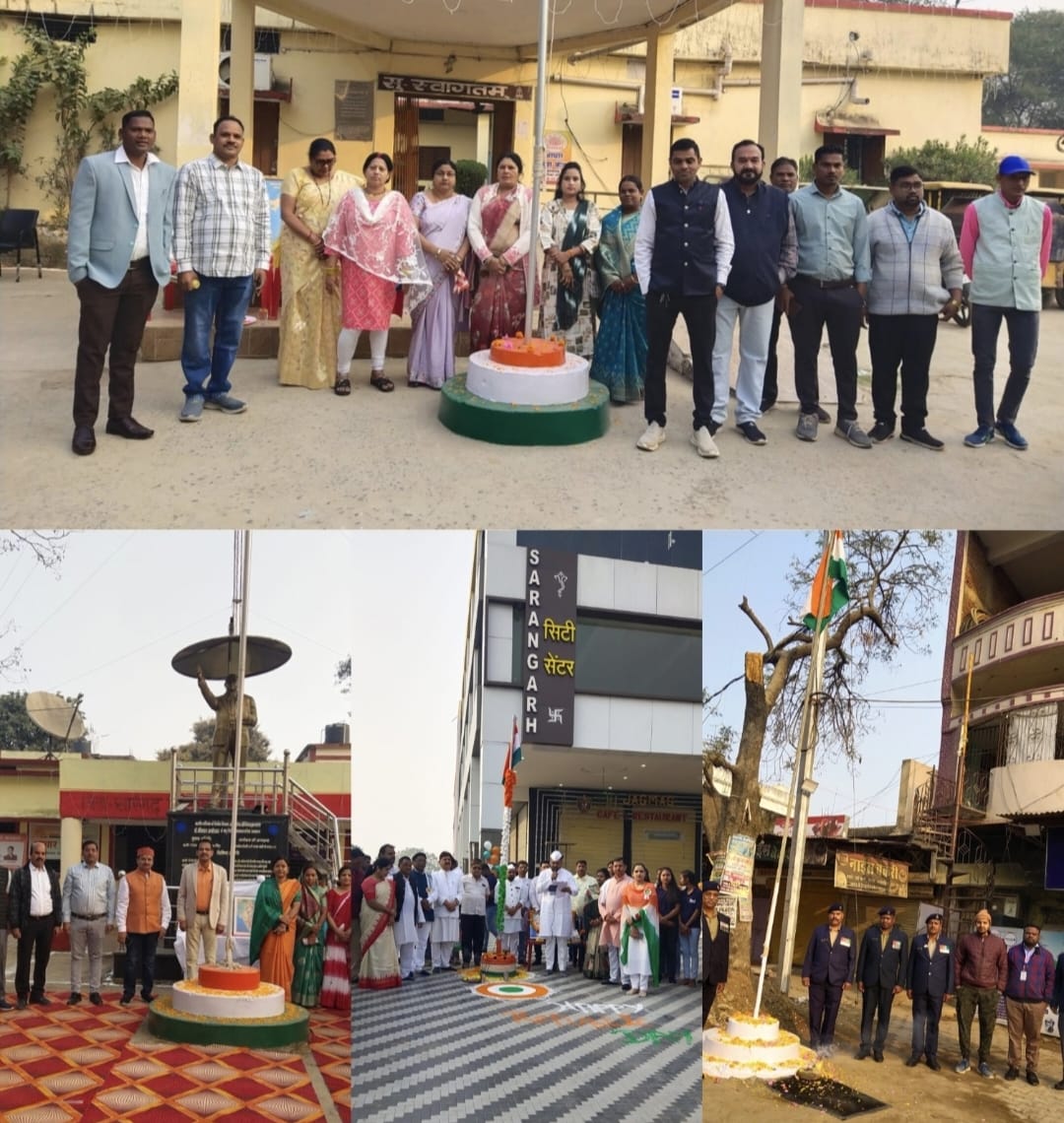 जिला कांग्रेस कार्यालय: जिलाध्यक्ष ताराचंद देवांगन ने 100 से अधिक पदाधिकारियों की मौजूदगी में तिरंगा फहराया। इस अवसर पर उन्होंने नागरिकों को संविधान से प्राप्त अधिकारों और कर्तव्यों के प्रति जागरूक किया।