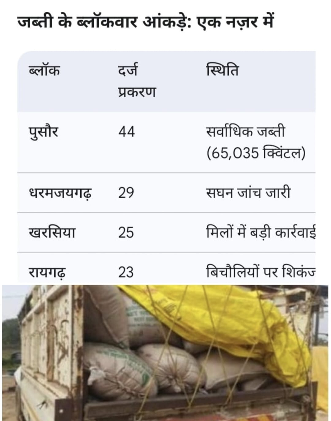 रायगढ़ में बिचौलियों पर प्रशासन का ‘हंटर’: 1.35 लाख क्विंटल अवैध धान जब्त..पुसौर बना तस्करी का एपिसेंटर..