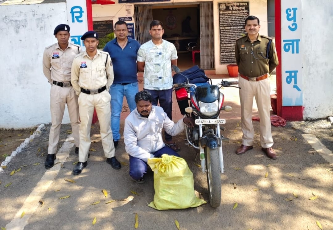 विवरण इस प्रकार है कि दिनांक 16/02/2026को दौरान पेट्रोलिंग जरिये मुखबीर सुचना मिला एक लाल रंग के HF डीलक्स मोटर सायकल क्रमांक OD 17 L 0372 का चालक उड़ीसा से गांजा लेकर ग्राम मल्दा, सारंगढ़ की तरफ जा रहा है सूचना पर सरिया थाना के सामने मेन रोड में घेराबंदी कर मोटर सायकल क्रमांक OD 17 L 0372 को पकड़ा गया।मोटर सायकल के चालक से नाम पता पूछने पर अपना नाम धरम सिंह सिदार पिता गैंग सिंह सिदार उम्र 45 वर्ष ग्राम मल्दा थाना सिटी कोतवाली सारंगढ़ बताया । मोटर सायकल में पीछे बंधे प्लास्टिक बोरी तथा डिक्की की तलाशी लेने पर 07 पैकेट में कुल 08किलो 240 ग्राम अवैध मादक पदार्थ गांजा मिला। आरोपी से पूछताछ करने पर जिला कंटामाल उड़ीसा से गांजा लेकर ग्राम मल्दा ,थाना सिटी कोतवाली सारंगढ़ बिक्री हेतु ले जाना बताया कि आरोपी धरम सिंह सिदार के कब्जे से 08किलो 240 ग्राम अवैध मादक पदार्थ गांजा, 01नग HF डीलक्स मोटर सायकल क्रमांक OD 17 L 0372, एक नग मोबाइल को जप्त कर आरोपी के खिलाफ थाना सरिया मे अपराध क्रमांक 29/2026 धारा 20 बी एनडीपीएस एक्ट पंजीबद्ध कर आरोपी को विधिवत् गिरफ्तार कर न्यायिक रिमांड पर जेल भेजा गया है।