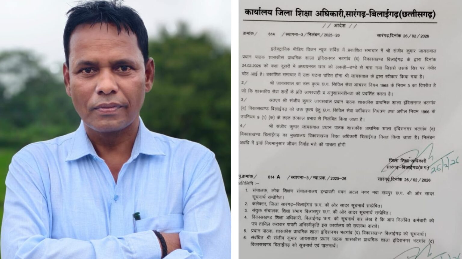 जांच अवधि के दौरान संबंधित शिक्षक को मुख्यालय बिलाईगढ़, विकासखंड शिक्षा अधिकारी कार्यालय से संबद्ध किया गया है। विभाग ने स्पष्ट किया है कि जांच पूरी होने के बाद तथ्यात्मक स्थिति के आधार पर आगे की कार्रवाई की जाएगी।