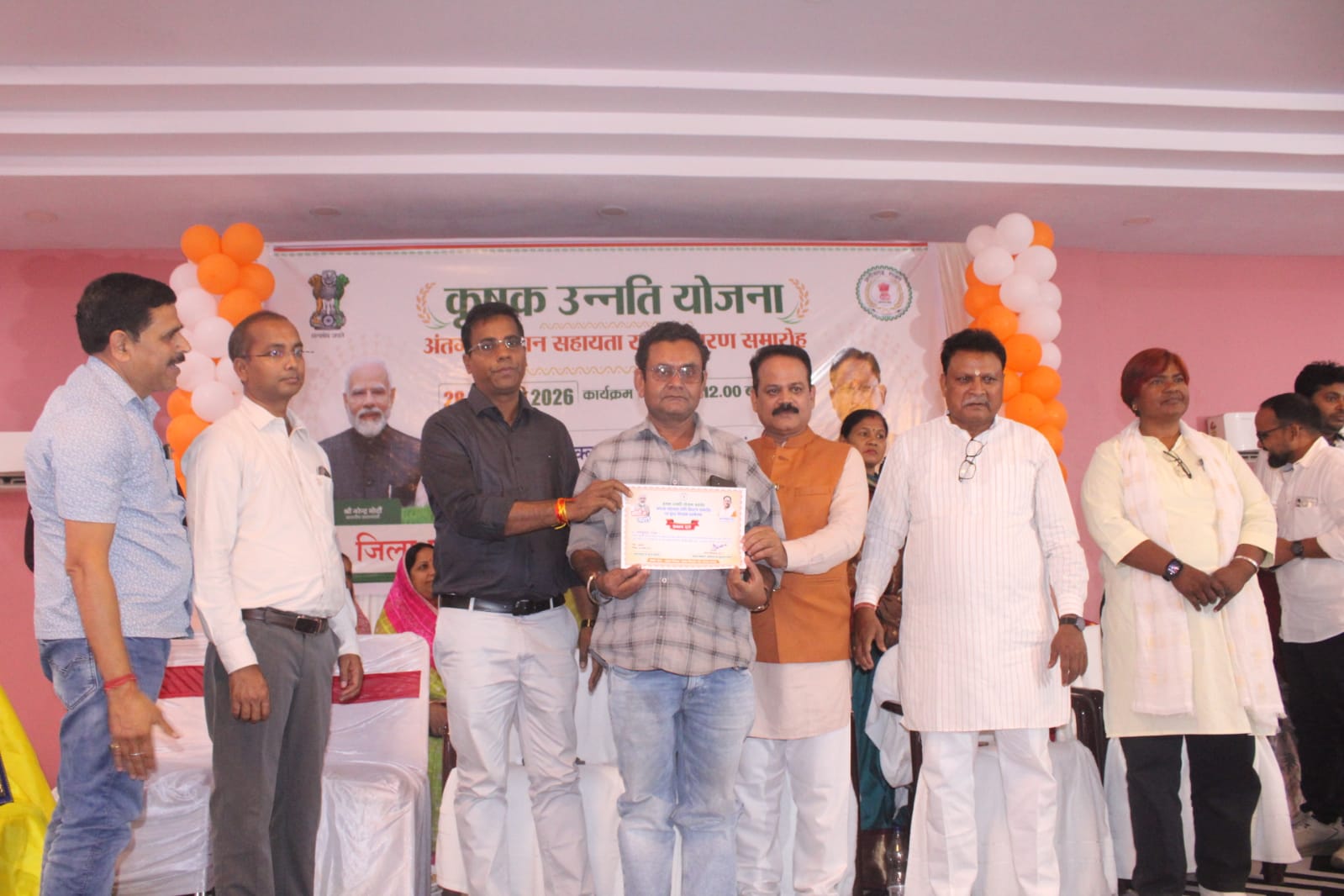 सारंगढ़-बिलाईगढ़। जिला मुख्यालय स्थित शुक्ला भवन में कृषक उन्नत योजना अंतर्गत आदान सहायता राशि वितरण समारोह का भव्य आयोजन किया गया। कार्यक्रम में प्रदेश के मुख्यमंत्री विष्णु देव साय वर्चुअल माध्यम से जुड़े और किसानों को संबोधित किया। मुख्यमंत्री के संबोधन को उपस्थित किसानों ने उत्साहपूर्वक सुना और सरकार की विभिन्न कृषक हितैषी योजनाओं की जानकारी प्राप्त की।