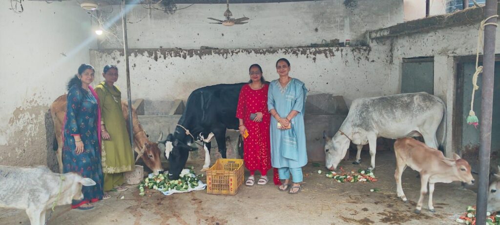 शाखा अध्यक्ष श्रीमती मधु केजरीवाल की गरिमामयी उपस्थिति में समिति की सदस्यों ने नगर स्थित गोपाल जी मंदिर, छोटे मठ की गौशाला में पहुंचकर गौमाता की सेवा की। इस दौरान गौमाता को ताजा और पौष्टिक हरी सब्जियां खिलाई गईं, जिससे सेवा का यह कार्य और भी सार्थक बन गया।